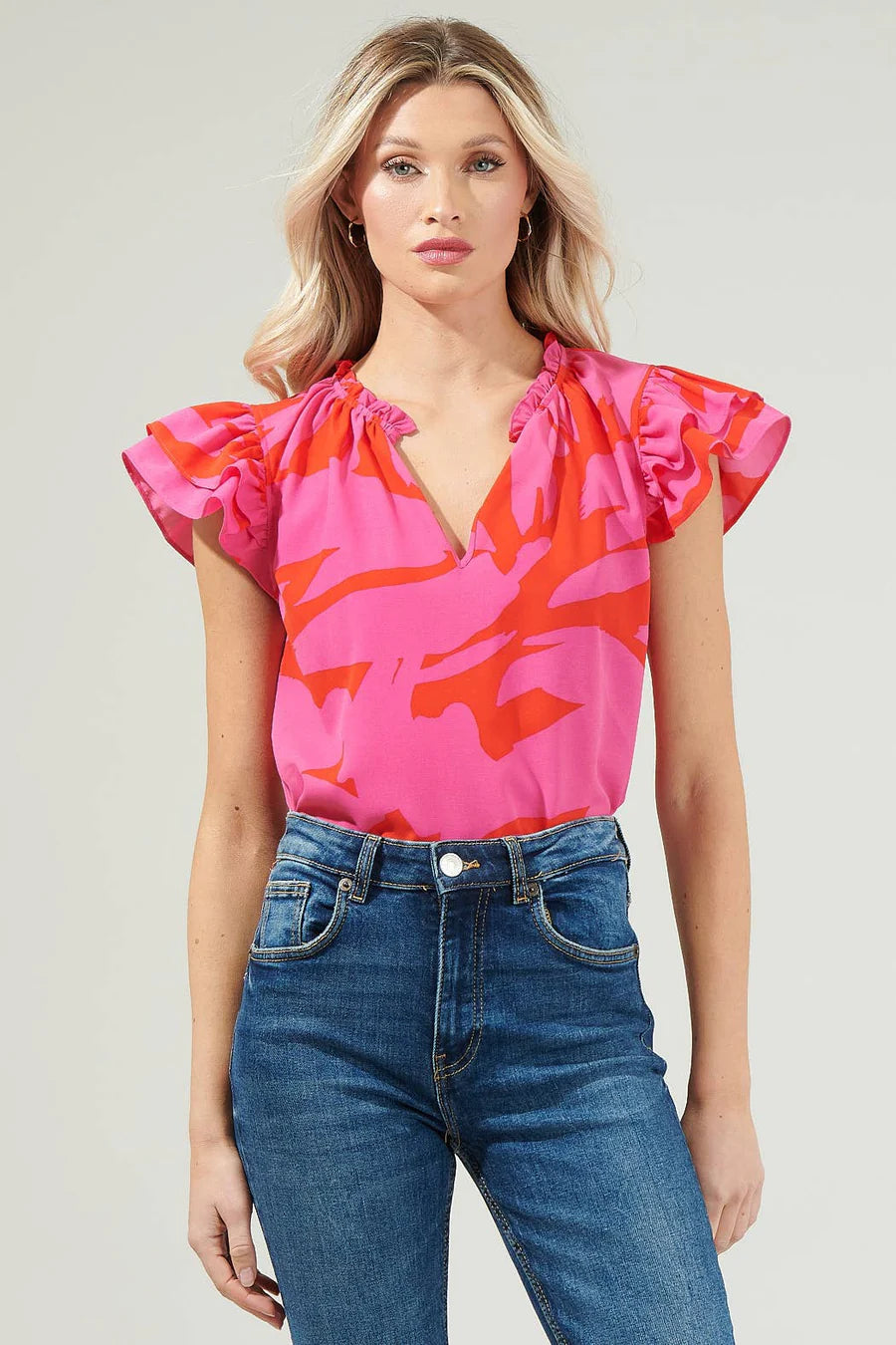La blusa Hanae es un suspiro floral con encanto natural. Su base rosa suave se ilumina con un estampado de flores rojas, creando un contraste delicado y femenino. Perfecta para looks de día con un toque romántico o para elevar un outfit casual con estilo.