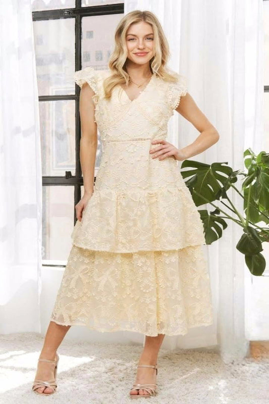El vestido “Bella” es la expresión perfecta de la feminidad. Confeccionado en un delicado tono crema, su diseño con olanes aporta movimiento, romanticismo y un aire sofisticado que nunca pasa desapercibido.