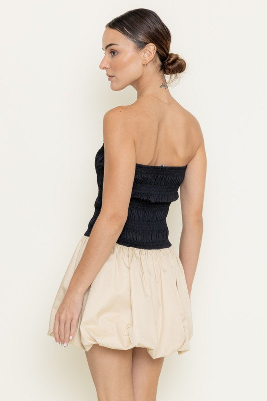 El vestido “Darinka” es la combinación perfecta entre glamour y feminidad, diseñado para mujeres que desean destacar con un estilo refinado y moderno. Su silueta globo añade un volumen coqueto y elegante, mientras que el diseño strapless realza los hombros y el cuello con delicadeza.