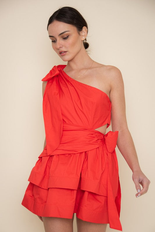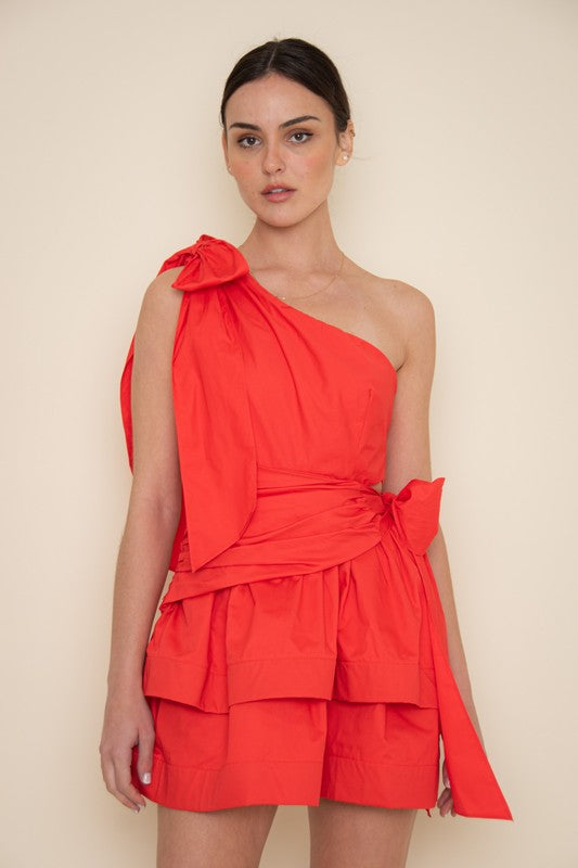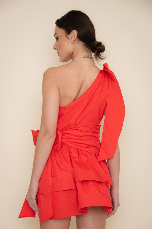 El vestido Deyanira es sinónimo de poder femenino con un toque glam. Su tono rojo tomate resalta con fuerza, mientras su diseño asimétrico y el moño en la manga le dan un aire moderno, coqueto y perfectamente elegante.