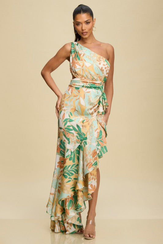 El vestido “Liz” combina la energía del amarillo con la frescura del verde en un estampado floral que enamora a primera vista. Su diseño asimétrico aporta un movimiento natural y un toque moderno, ideal para mujeres que buscan un look vibrante sin perder la elegancia.