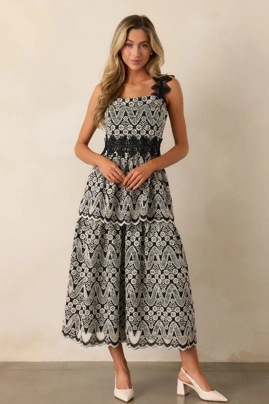 El vestido Silvana es una obra de elegancia atemporal. Confeccionado en guipur delicado, combina la fuerza del negrocon la pureza del blanco, logrando una pieza sofisticada y con carácter, ideal para eventos importantes o momentos especiales.